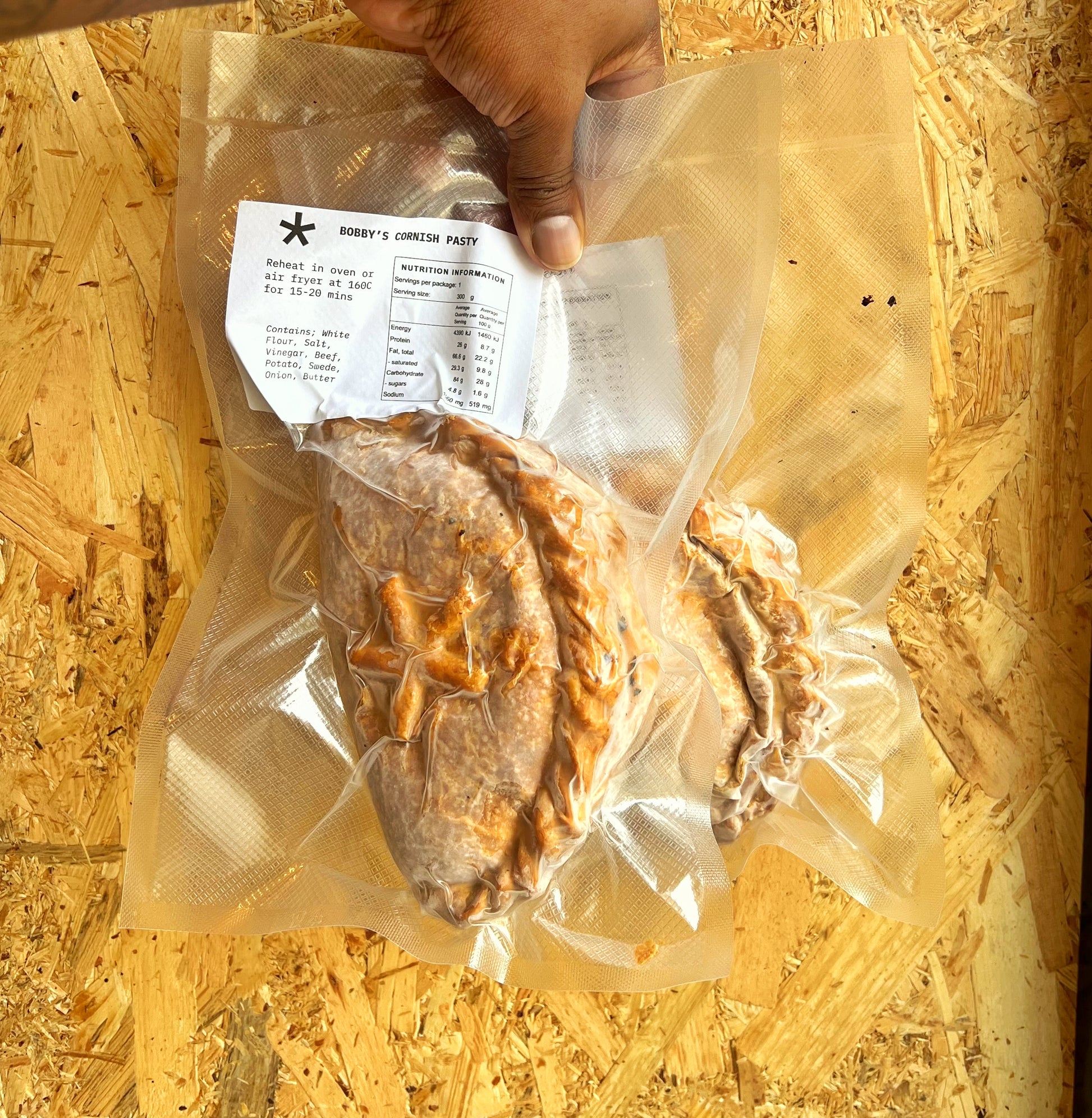 Now FROZEN post-bake, ready for a reheat in your own comfort. Our Beef Skirt Pasty, made the traditional Cornish way, is a Bobby's staple and a must try!